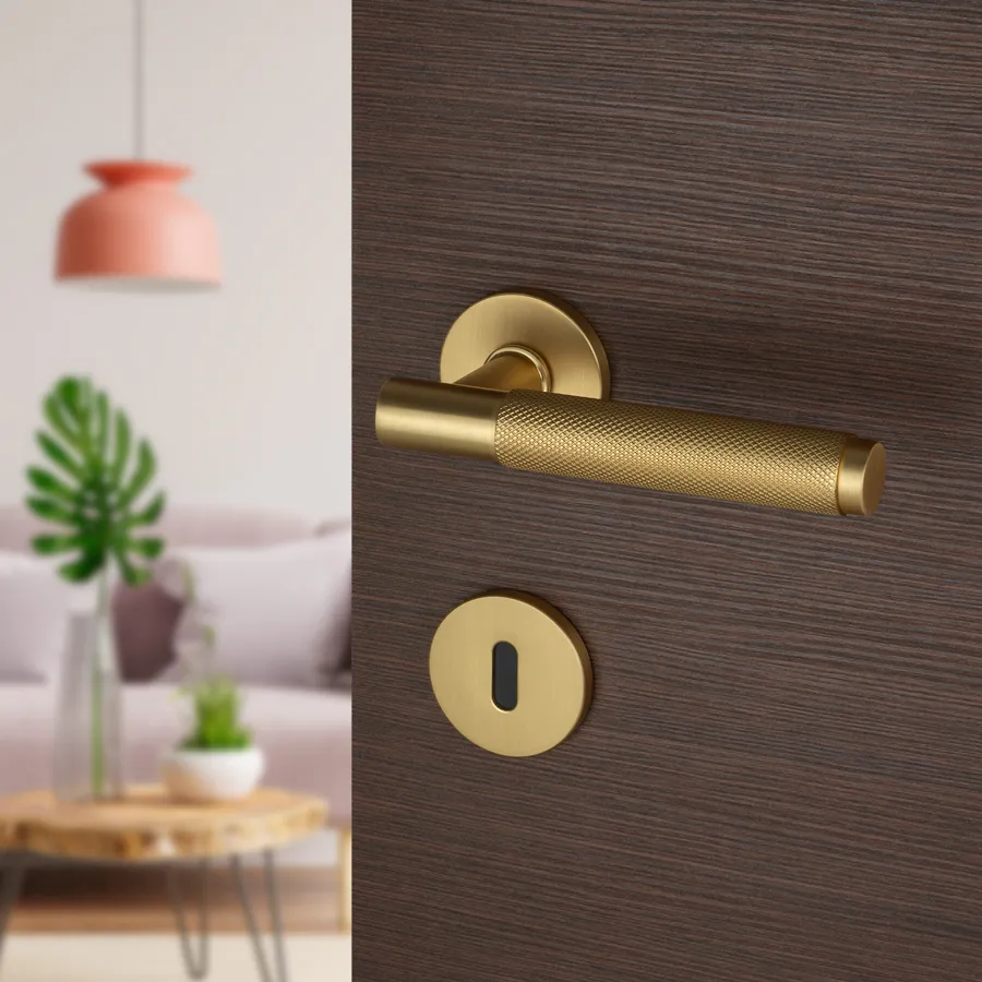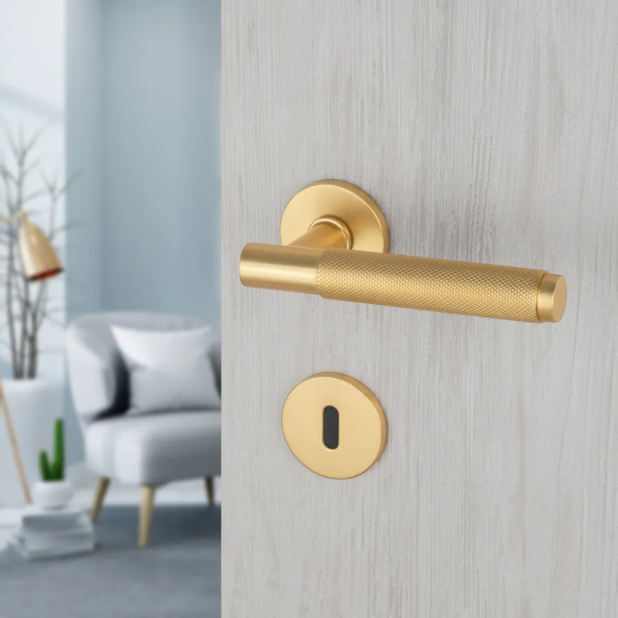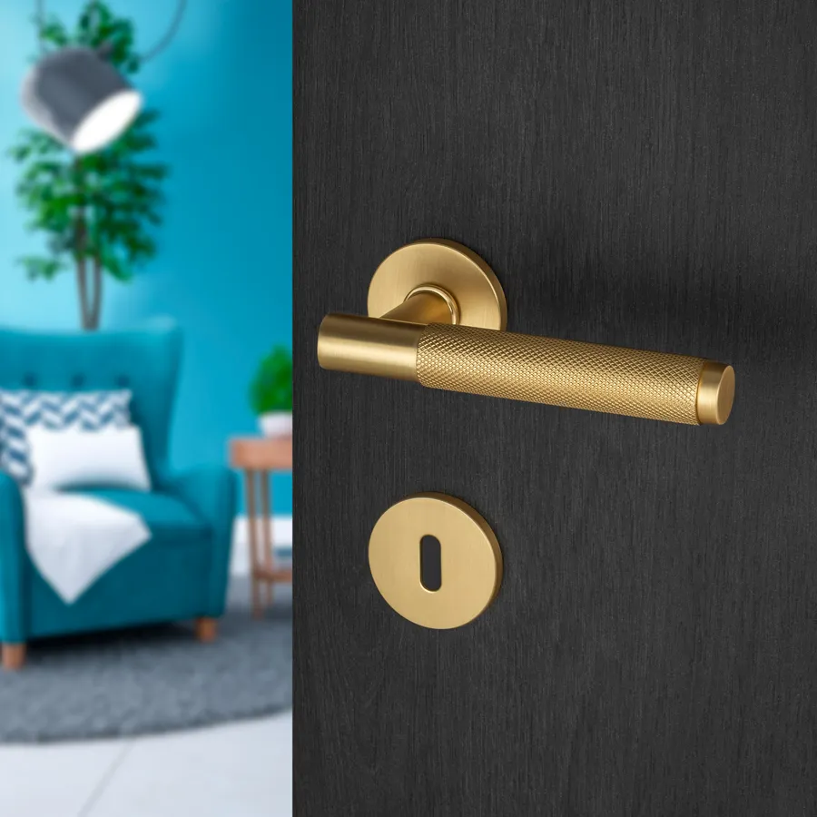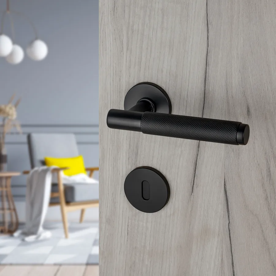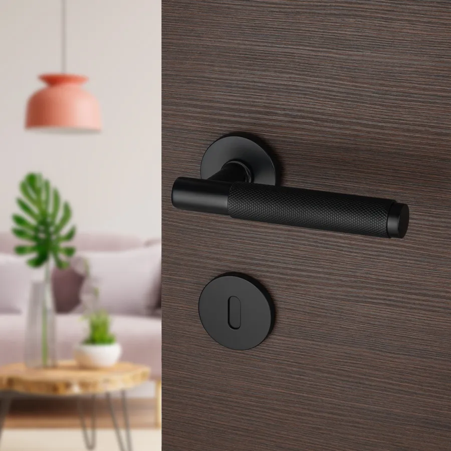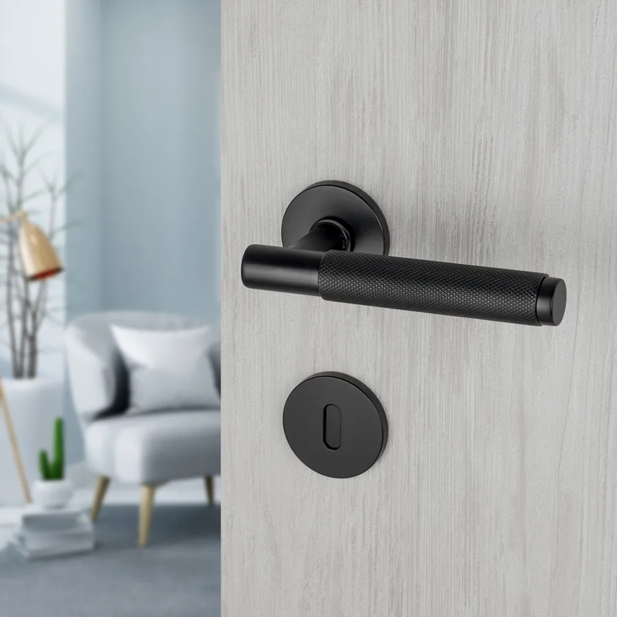 Dvodelna Kvaka PUNČ svojim dizajnom uklapa se u moderne enterijere. Otvori na rozeti za ključ, cilindar i sa leptirom za toaletna vrata.